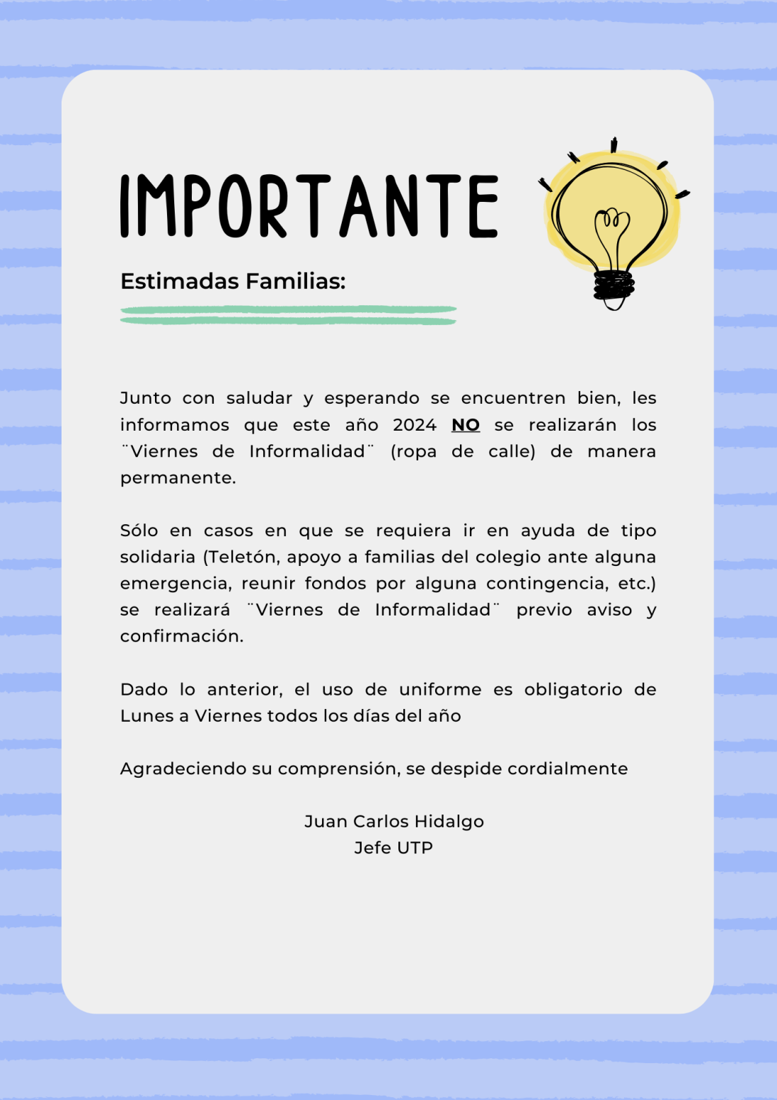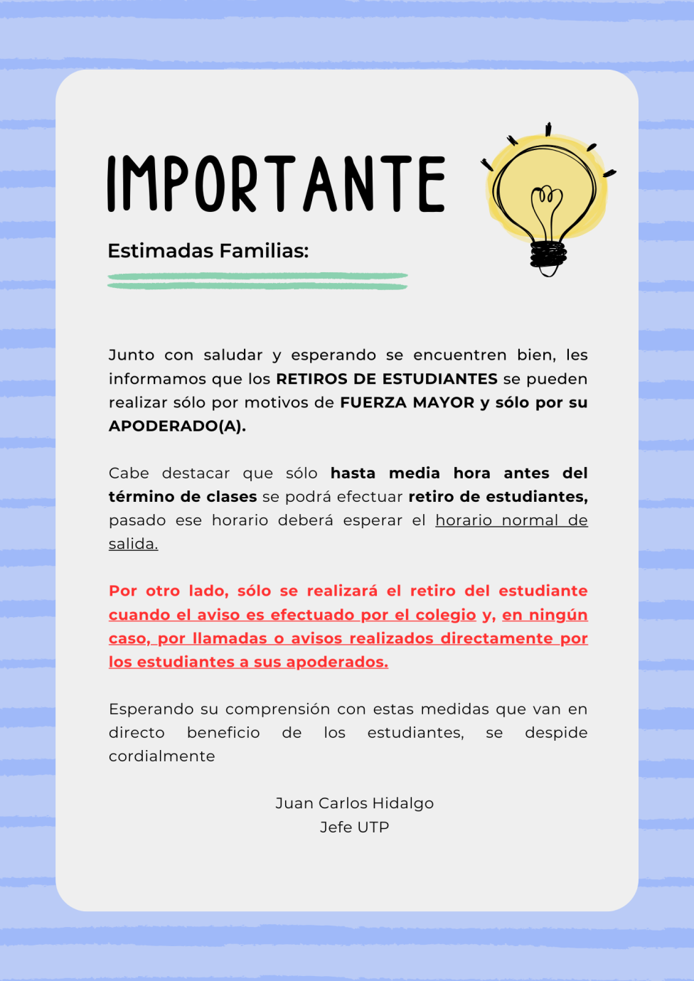 El día 27 de agosto de 2021, nuestro establecimiento recibió la certificación “Sello COVID-19” otorgada por la Asociación Chilena de Seguridad y que verifica el cumplimiento de los requerimientos establecidos tanto por el Ministerio de Salud como la Superintendencia de Seguridad Social (SUSESO) para el control de la pandemia, tanto en sus instalaciones, como con sus funcionarios, permitiendo verificar las operaciones que realizan y certificando que estas cumplen con las medidas preventivas necesarias.